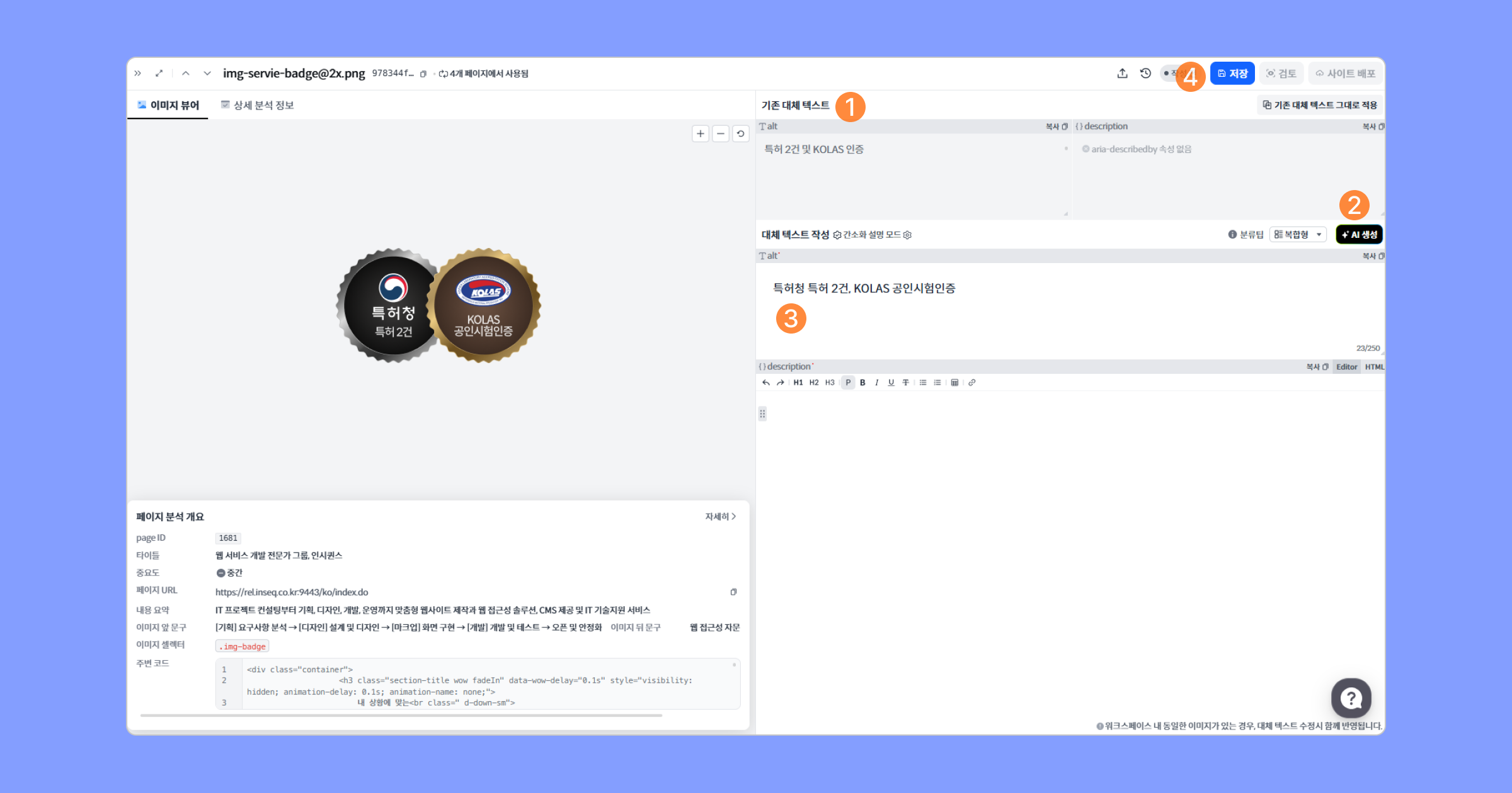 대체 텍스트 생성 후 저장 버튼을 누르면